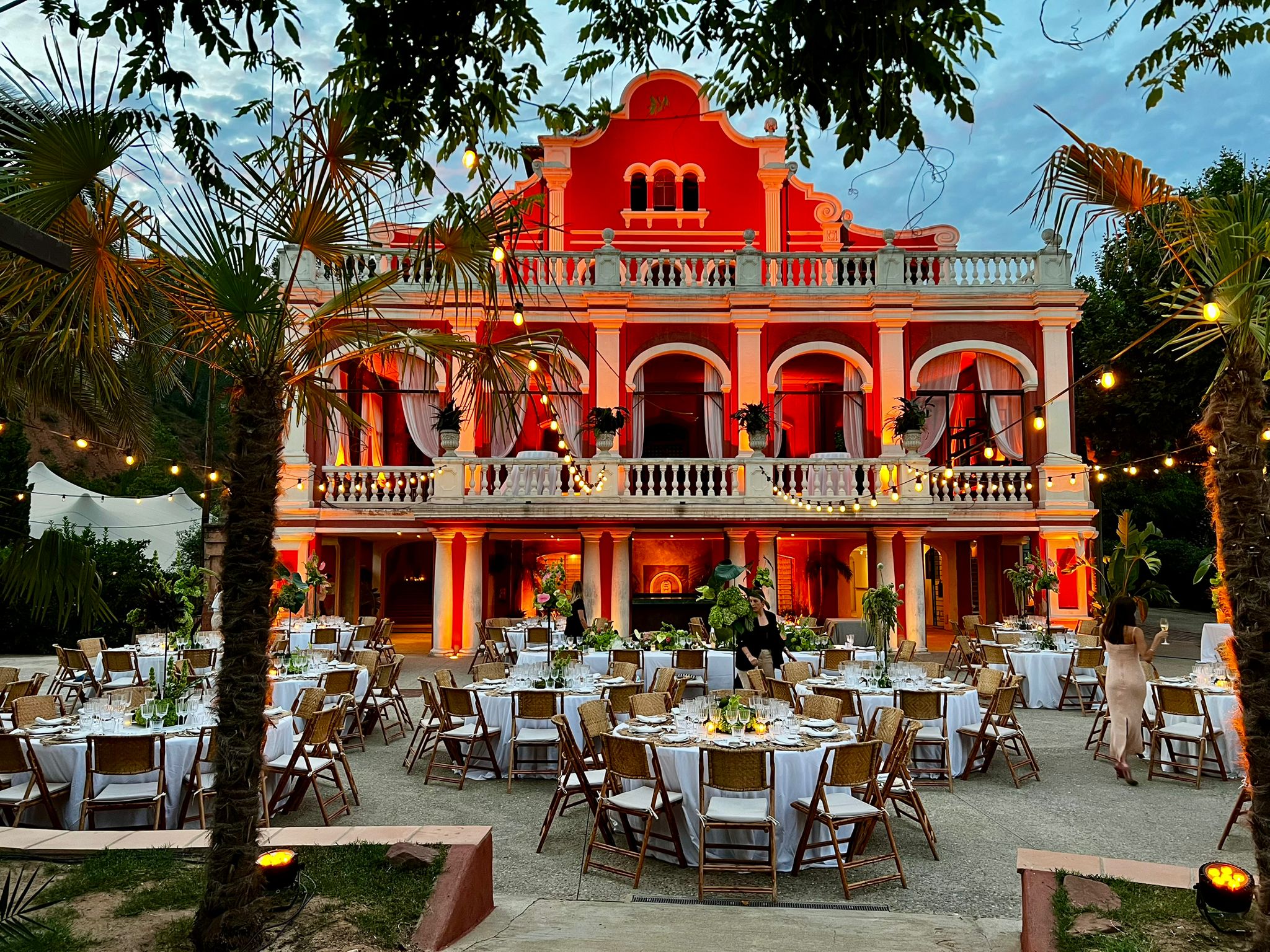 Este lugar ofrece espacios tanto interiores como exteriores exclusivos para eventos con capacidad para hasta aproximadamente 200 invitados, con jardines, salones y terrazas que permiten ambientaciones personalizadas para bodas, reuniones corporativas o sesiones fotográficas. . Una historia centenaria de amor, exilio y tradición familiar atraviesa la atmósfera del lugar, convirtiéndolo en una opción única y emocionalmente cargada para una celebración de lujo cerca de Barcelona.